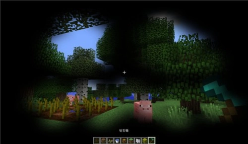 我们只需像戴头盔那样把南瓜戴上,就能使用这个功能,不过视野会有所受限:你只能看到南瓜被雕刻的区域,其余部分都会被黑色阴影遮挡。