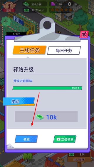 完成主线任务进度后,返回任务面板领取奖励,推进后续驿站升级任务,逐步提升驿站的经营收益。