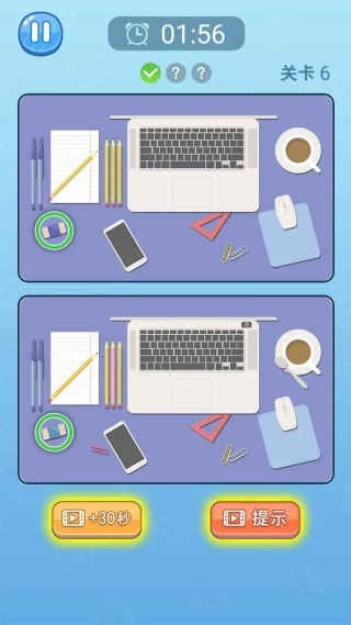 当遇到瓶颈时,使用提示道具能够高亮显示随机的差异点,或者冻结倒计时,从而为找出剩余的不同之处提供帮助。