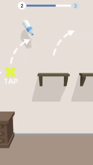 只需在屏幕上随意点击,就能让瓶子向上跳跃,你得好好把控跳跃的力度,确保瓶子不会直接掉到地面上。