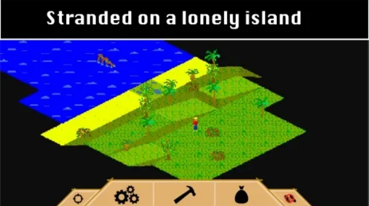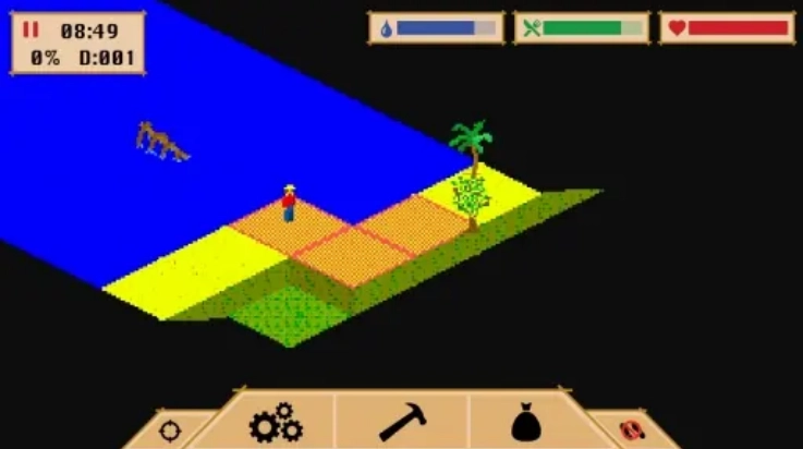 2、游戏采用复古画风,整体结构简洁,不过像探索、采集、简易道具组装这类基础的荒岛生存玩法都颇具趣味性。