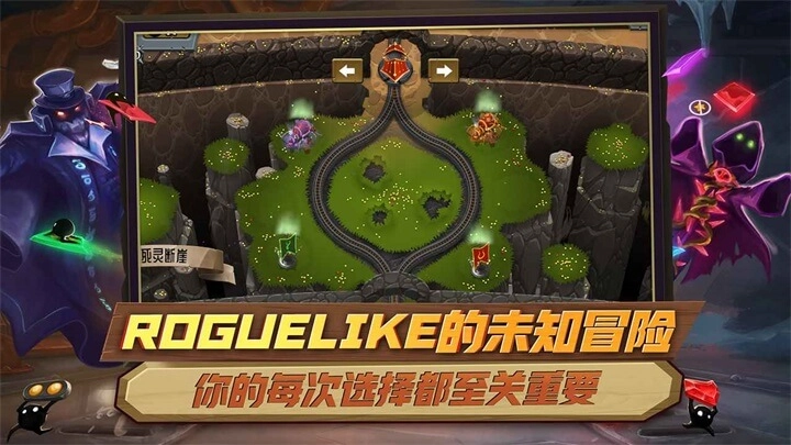 6.对战胜利后会获得一次补充机会,两条路线方向不同,遇到的游戏事件、商店以及获得的卡牌均为随机。做出正确选择并进行合理搭配有助于提升游戏体验,很多时候并非卡牌数量越多越好,而是越实用越好。因此在选择卡牌时,若遇到作用不大或已有更好替代品的牌,不妨直接跳过。