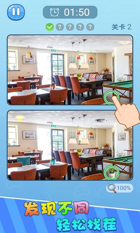 2、观察差异:玩家需在游戏里仔细留意各图片之间存在的不同之处,并及时点击进行处理。