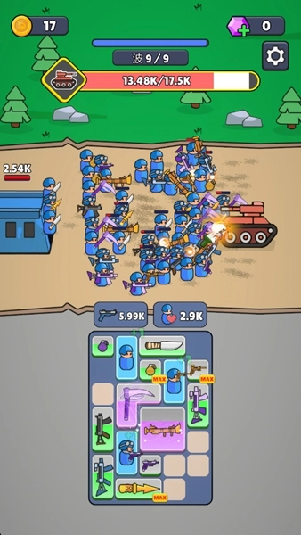 4.战斗胜利后继续部署士兵与武器,等级相同的武器能够通过合成实现升级。