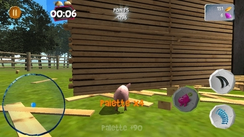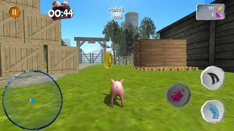 3、现在开启你的模拟探索之旅吧,首先得想办法离开这片区域。左侧的滑轮摇杆能操控小猪移动,右侧的按键是几个攻击键,你可以自己去尝试探索一下。