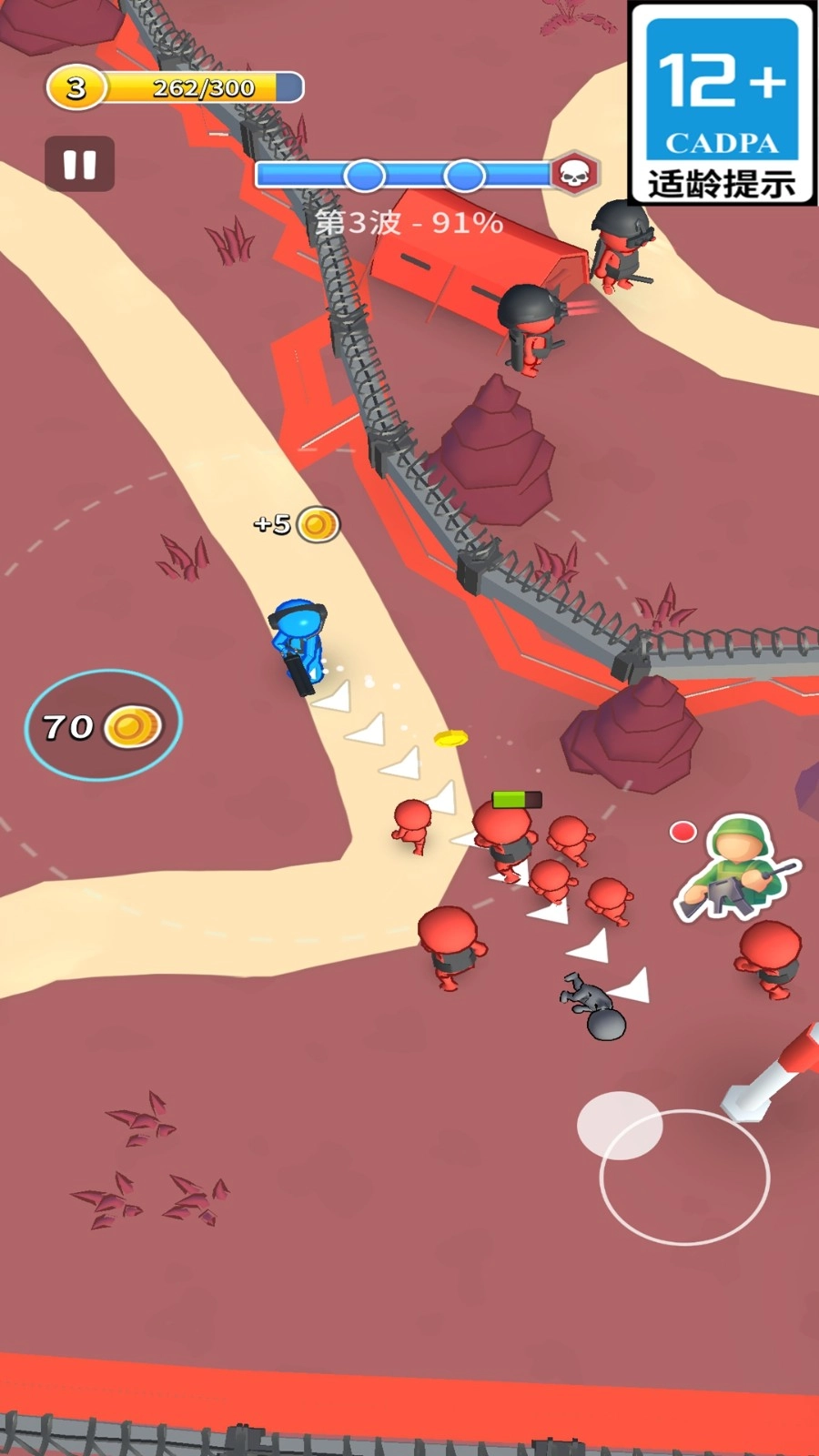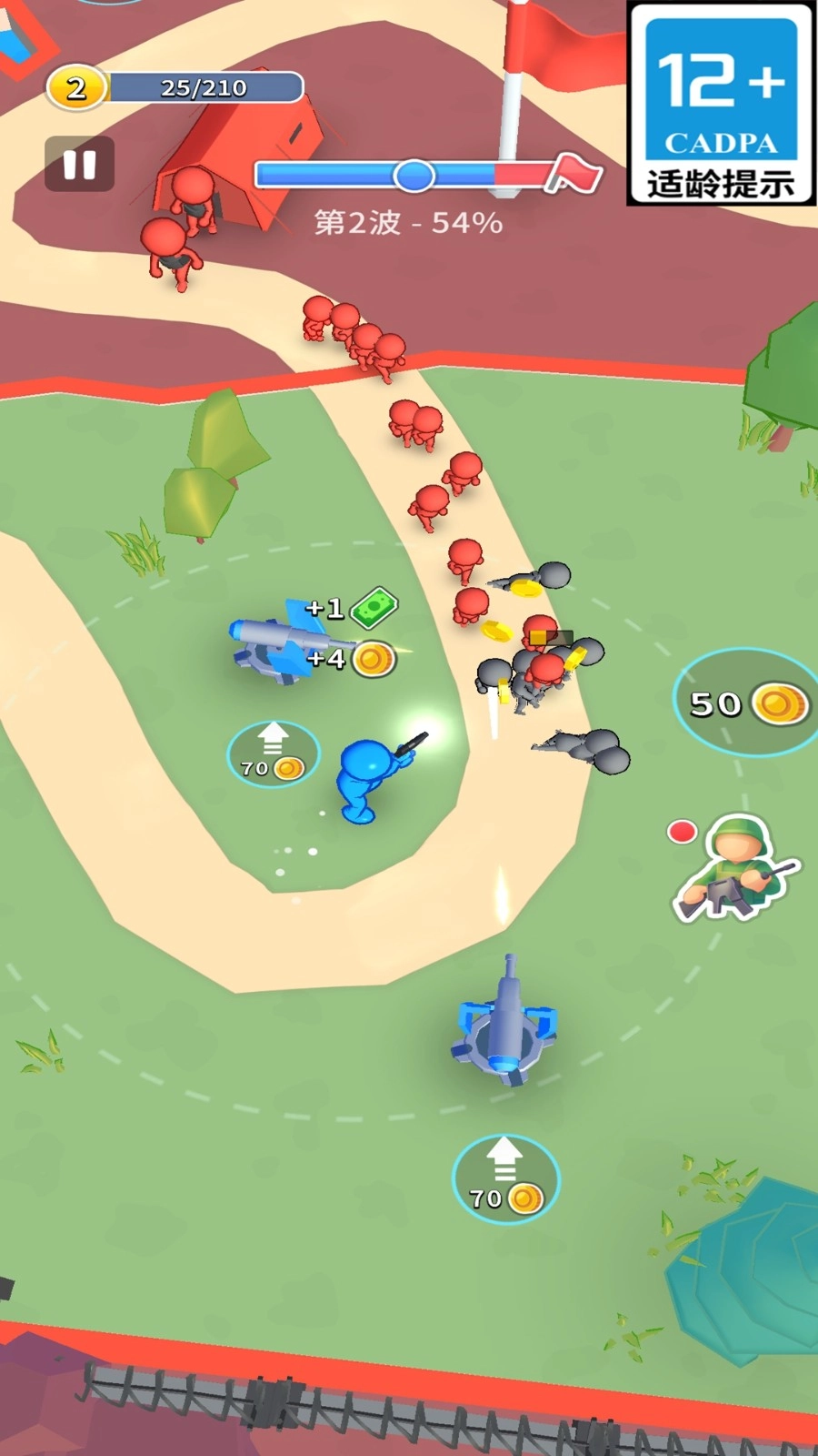 这是一款竖屏策略闯关游戏,运用别具一格的火柴人美术风格,于简约的视觉呈现里营造出富有张力的战场氛围。