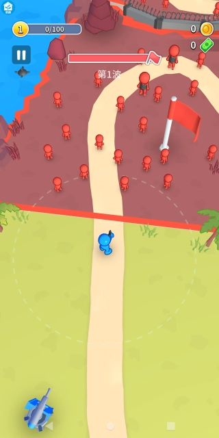 3. 就像下面的图所展示的,战争已然打响,你需要操控火柴人的行动。一旦敌人进入火柴人或者炮塔的攻击范围,它们就会主动对敌人发起攻击。
