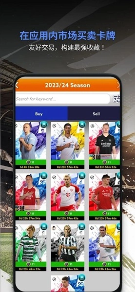 收集全球足球巨星的数字收藏卡,用这些卡片参与精彩的卡牌对战,还能通过按需打印服务获取实体卡!