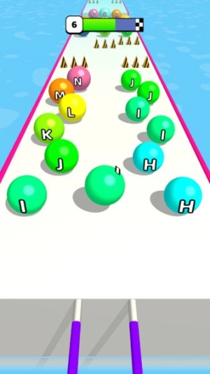 这是一款融合字母组合合成玩法与闯关机制的益智游戏。玩家需把数字相同的方块合并,生成数值更大的球体,再引导它躲开尖刺到达终点。完成关卡任务能赚取金币,用于球体的升级强化;当底部区域无法再进行合成操作时,新的方块会自动掉落,助力游戏继续推进。