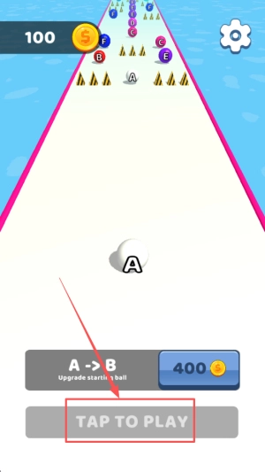 1、开局升级:点击“TAP TO PLAY”,消耗100积分升级初始球后即可进入关卡。