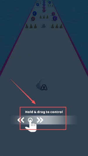 2、拖拽控制:按住A点并进行拖拽Hold&dragto,以此引导弹珠左右移动。