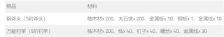 铁斧:雪松木100石头150粗绳子10铁板1