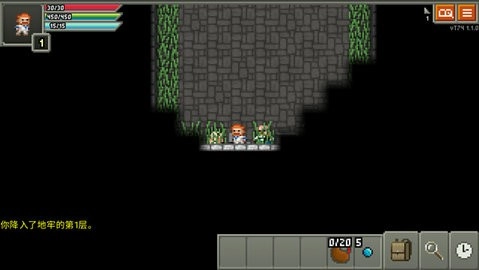 游戏的操作十分简便,玩家只需点击屏幕即可操控角色移动,点击前方出现的敌人便能自动发起攻击,若遇到道具则会自动收入背包。游戏界面左下角的按钮依次为“等待一回合”“搜索周边区域”和“检查目标详情”,合理运用这些功能,就能在地牢中收获意外惊喜。