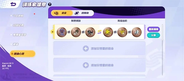 然后集换系统分为两个模板,一个是你自己发布的,另一个则相当于交易行。你可以找到心仪的装备徽章,然后添加对应的训练家进行集换。首先是: