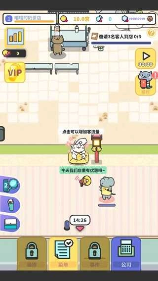 你可以招募可爱的猫咪来帮忙工作,这样能让制作进度更快。要是想持续研发新的奶茶配方,提升店铺的人气和吸引力,就得给原料升级,也得给猫咪升级。
