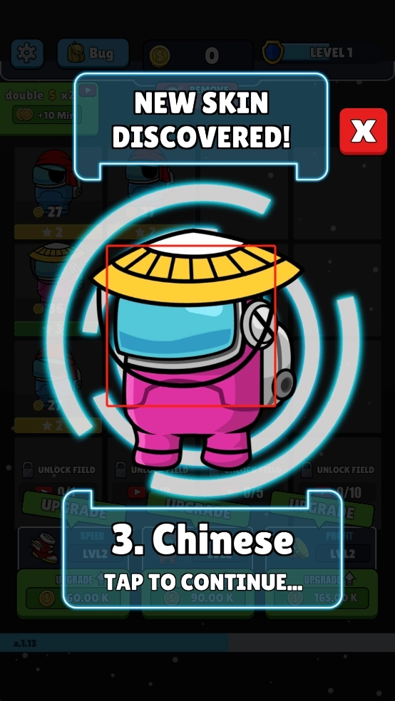 3、解锁名为中式的粉色戴斗笠新皮肤后,点击屏幕进入下一环节,后续可通过持续合并、升级操作。