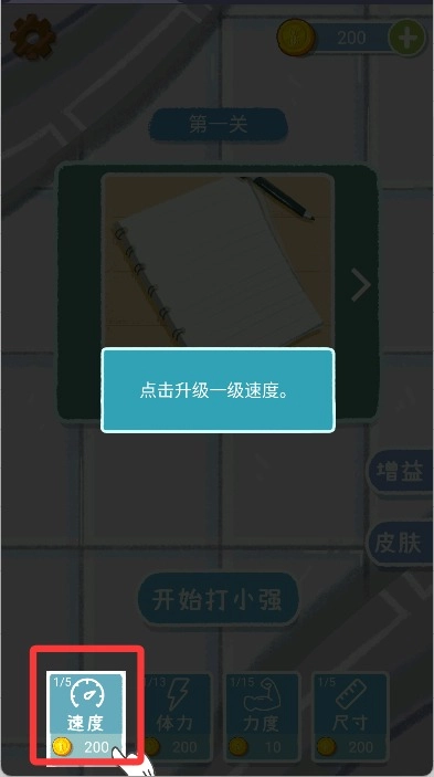 3、除掉小强就能得到金币奖励,通过升级拍击的各项参数,像速度、力度、体力这些方面,来提高整体的作战效率和火力。
