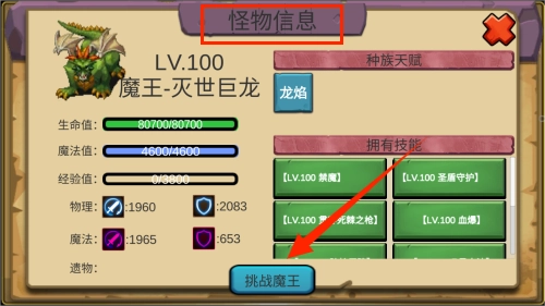 2、在魔王图鉴里挑选想要讨伐的对象,像远古魔像这类破坏力极强的强力BOSS都可以作为选择目标。