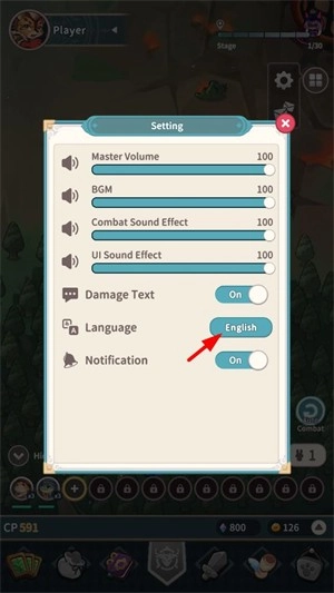 2、接着在设置界面中找到language选项,点击选择English来切换语言。