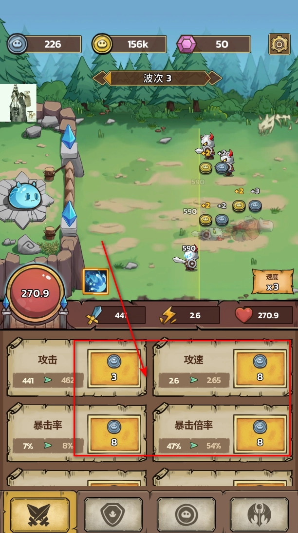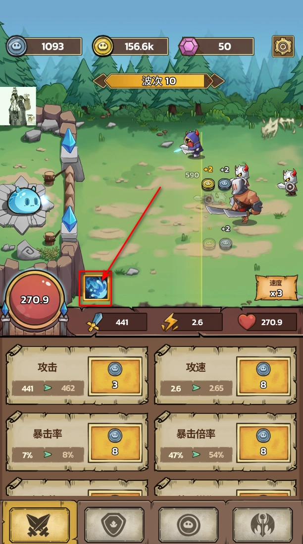1.进入游戏后,通过击败小怪获取货币,再用这些货币来升级我们的防御体系。