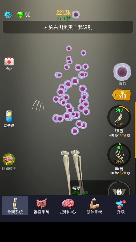 空闲人类汉化版(Idle Human)是一款能帮助玩家深入了解人体结构的休闲游戏。在游戏里,玩家需要通过细胞来逐步构建完整的人体。游戏内容并不复杂,但需要投入一定时间精力,好在它采用点击式操作。要是想加快游戏进度,玩家可以选择观看广告来达成。