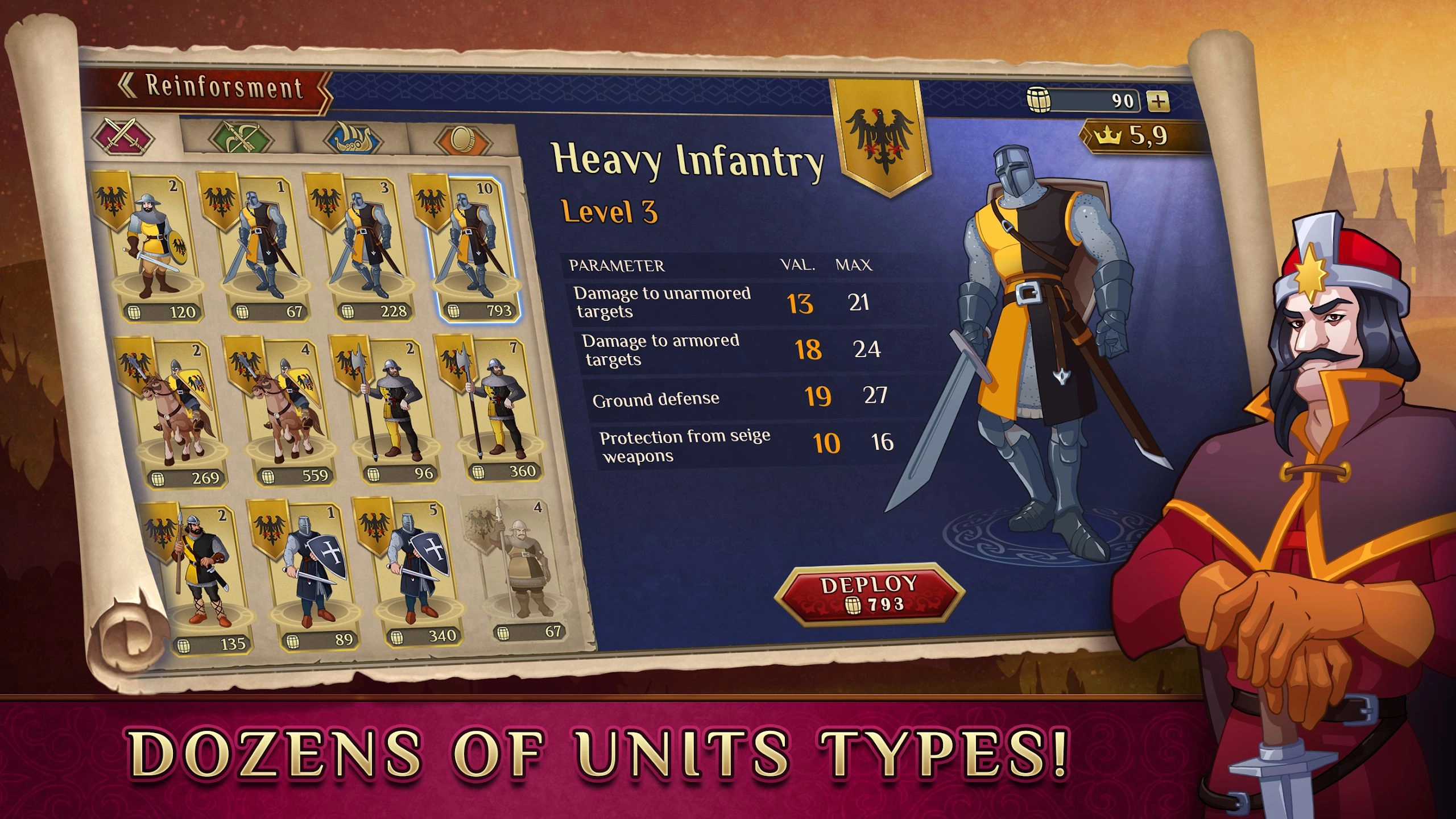 - 可以挑选圣女贞德、斯维亚托斯拉夫、狮心王理查等许许多多的历史人物来担任王国的领袖!