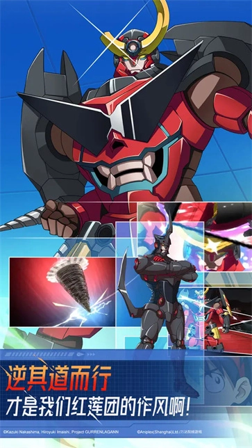 天元突破红莲螺岩游戏改编自经典热血动画《天元突破红莲螺岩》,拥有该IP的正版授权。游戏完整收录了原作中的所有颜面,玩家可搭配专属机师,打造属于自己的强力战队。