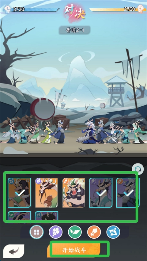 5、点击普通2-1进行关卡战斗。