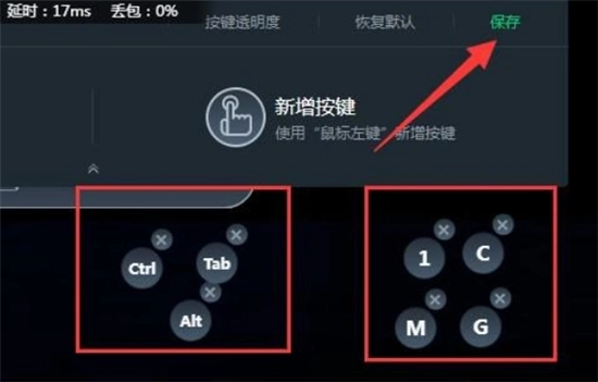 完成所有键位的设置后,点击界面上方的“保存”按钮,这样就能用新配置的键盘布局来进行游戏了。