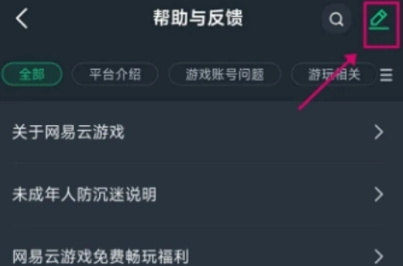 2、进入“帮助与反馈”界面后,点击右上角的“一支笔”图标。