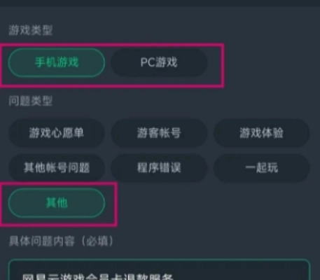 3、选择游戏类型与问题类型,填写具体的问题内容,输入完成后点击提交。
