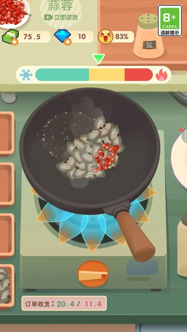 3、竖屏设计操作便捷,玩家单手就能同时体验烹饪的乐趣与经营的成就感;