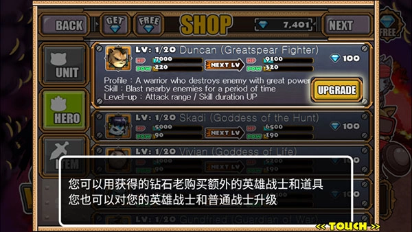1、玩家可通过升级技能、提升熟练度、解锁关卡等方式推进游戏进程,在游戏过程中还能自由选择不同角色。