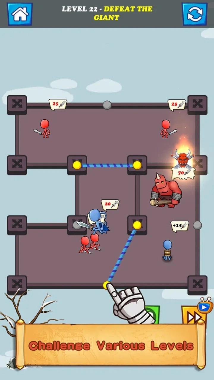 火柴人英雄攻防战是一款以火柴人为题材的策略塔防游戏,在游戏安装后,玩家可以通过画线来布置塔防设施,集结自己的队伍,抵御敌人的一次次进攻,守卫住自己的城池,最终击败所有前来侵犯的敌人。