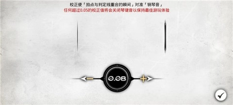 4、可点击“-”和“+”按钮来校正拍点与判定线,保证每次点击都能和钢琴音声精准匹配。调整好后,点击右下角的“√”按钮完成确认。