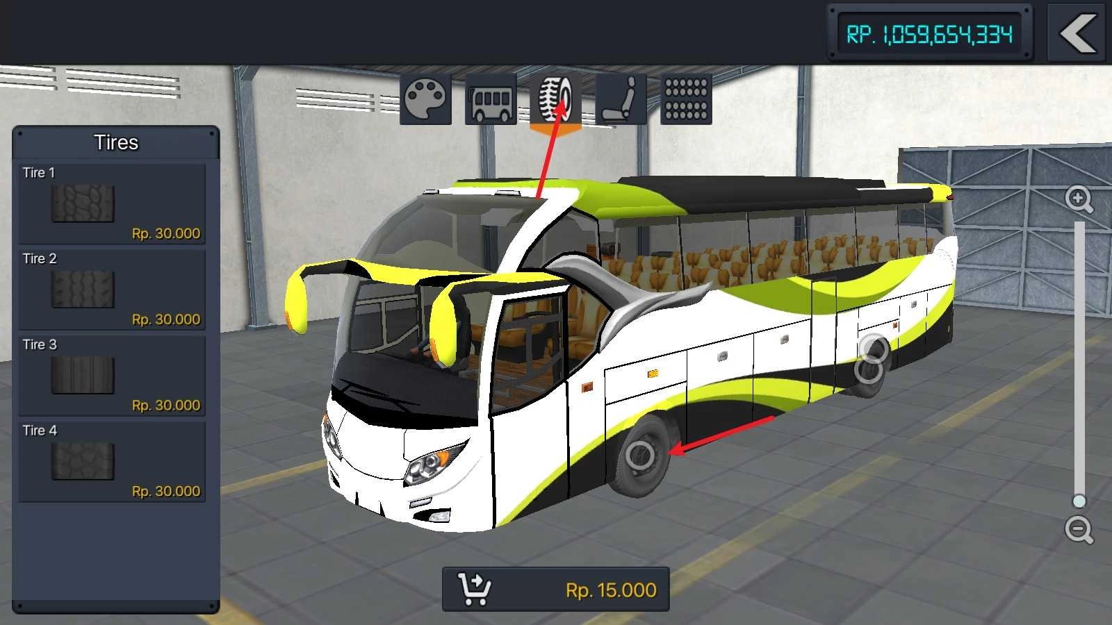 2、点击巴士车身,此时会出现多个圆圈,这些圆圈代表着可改装的部位,点击相应圆圈就能购买并更换各类零件。