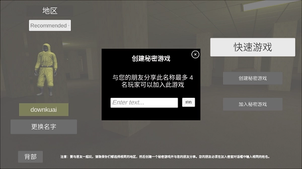 1、启动后室联机版,选择“多人游戏”选项; 2、随后点击“创建秘密游戏”按钮。