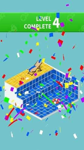 1.点贴瓷砖是一款有意思的瓷砖类游戏,玩家需要把瓷砖铺贴到房间或者游泳池里。