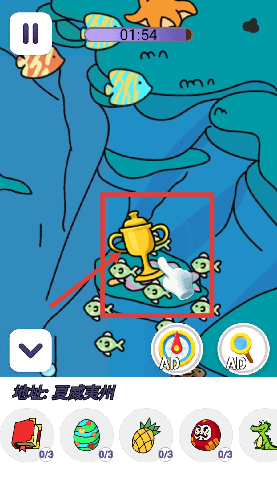 2、在场景中找金色奖杯,点击收集,推进收集进度。