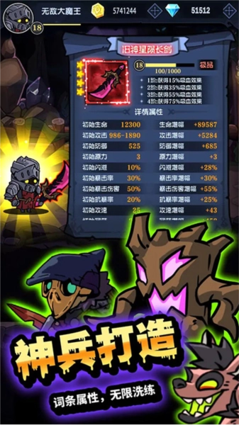 1、丰富强力的武器装备可通过闯关获取,无需氪金就能拥有强力套装来提升实力,还能借助重铸与精炼的途径进一步提高属性。