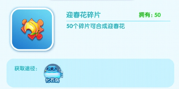 开启化石岛的宝箱,收集齐50个迎春花碎片后,就能合成出一只迎春花啦~