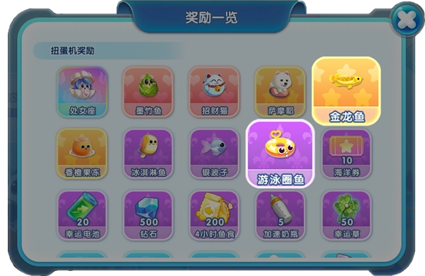 游泳圈鱼和金龙鱼都能从扭蛋机里扭出来,而且可以同时扭蛋。