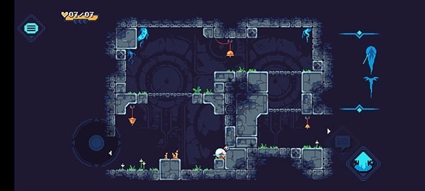 5、玩家要在地图里自由地探索移动,留意那些隐藏的关卡障碍与陷阱,并且得时刻关注左上角的生命值。