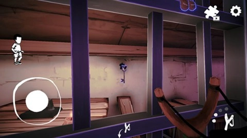 3、朝牢笼左边望去,用手里的弹弓把墙壁上方的钥匙打下来。