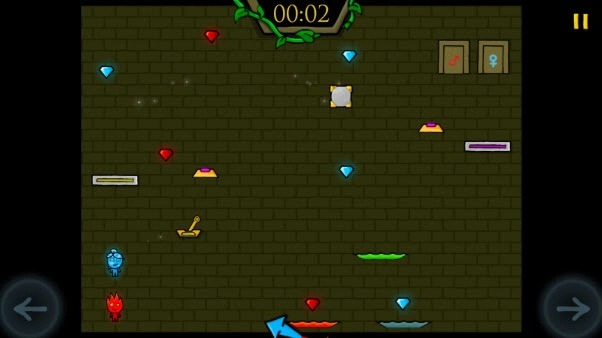 游戏设定了两位主角,分别是小冰人和小火人。火娃对水有所畏惧,水娃则害怕火焰,二者各自具备独特的属性与操作手感。它们原本生活在一片森林里,如今却渴望离开此地。玩家需运用智慧操控冰火人开启各类开关,跨越重重陷阱,闯过不同关卡,最终一同离开当前关卡。