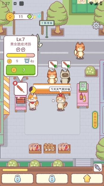 3、超萌猫咪主厨设定:经营小摊的是一只身着围裙的橘猫,它会略显笨拙地颠勺、数钱,每个动作都透着毛茸茸的可爱劲儿。