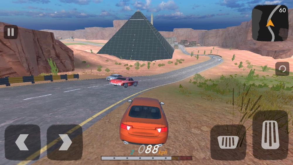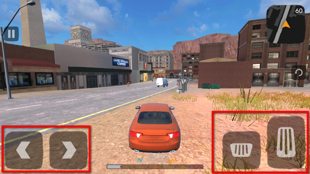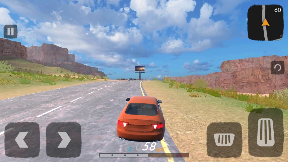 3、车辆转向由左下角的虚拟方向盘来控制,车速则通过右下角的油门/刹车踏板进行调节。长按油门能够实现加速,轻触刹车即可完成减速操作。