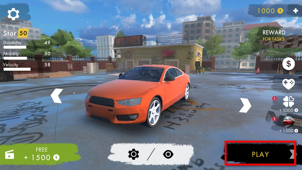 1、启动游戏后,点击主界面中间位置的“PLAY”按钮,就能开启你的赛车之旅了。