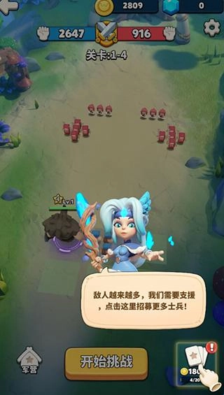 在开启对战之前,玩家能够点击右下角的卡牌图标来招募士兵,以此提升队伍的战斗力。
