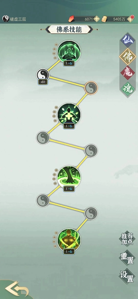 练气大圆满阶段可以重置天赋,选择佛一、佛二,之后优先把生命点到40级,再点佛三、佛四,这样就能在筑基和金丹期顺利度过了。